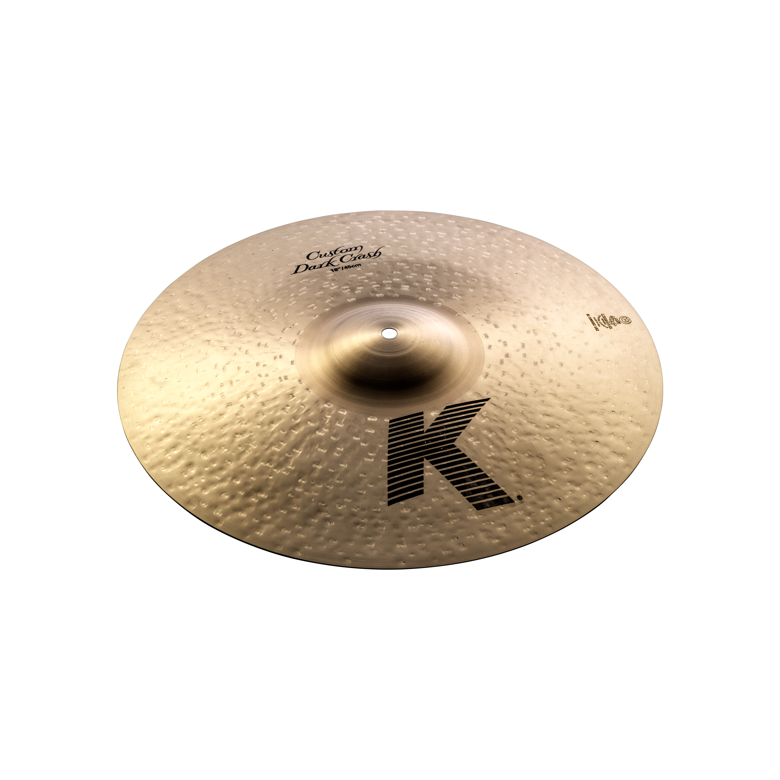 The dark and full-bodied K Custom Dark Crash utilizes a special over-hammering technique that allows for a quick and bright attack with an extra fast decay. This allows for a heavier Crash to have a similar response to a thinner and lighter cymbal, but with a lot more volume potential.