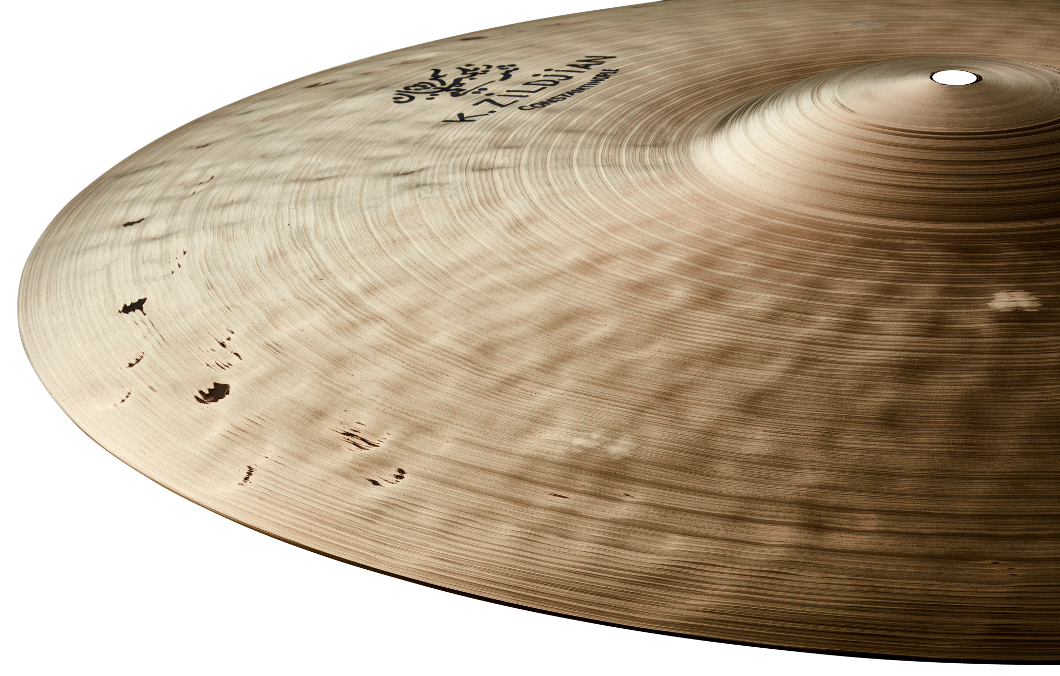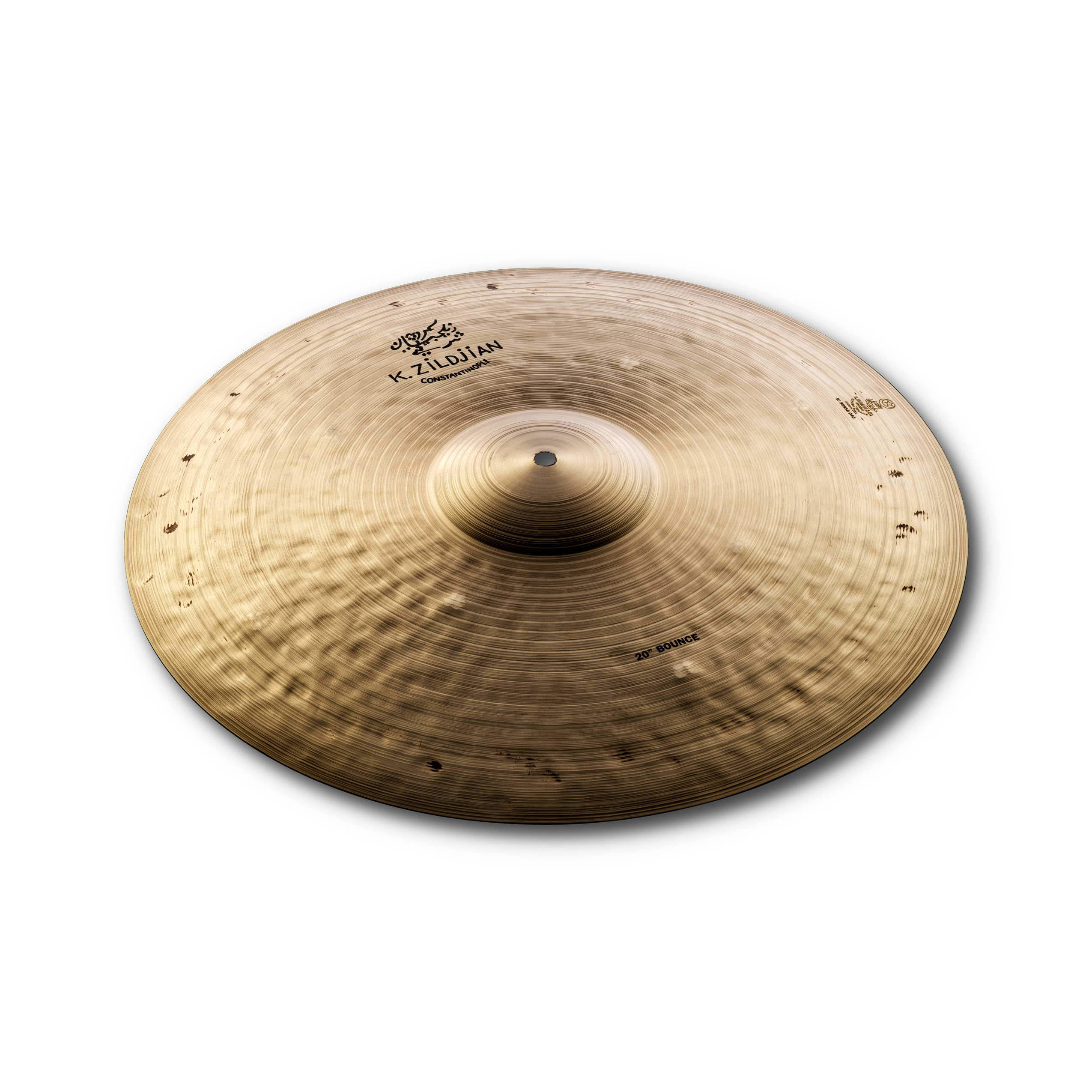 The K Constantinople Bounce Ride is the result of a collaboration with jazz artist Kenny Washington, and recreates the specs of an old, classic K gifted to him in the 1970’s by late jazz great Mel Lewis. While replicating the higher curvature and narrower, wider spaced lathing style, a new cup design was created to best resemble that of Kenny’s old K. Extra ‘cluster’ hammering, typically found in orchestral cymbals and placed around the cymbal in eight unique clusters, gives the cymbal a lower drone and just enough trash and ‘dirt’. This 20″ size features slightly smaller hammer clusters and a slightly higher pitch than the 22″, with plenty of wash and sustain that rides over the band and cuts through most small-to-big band settings.