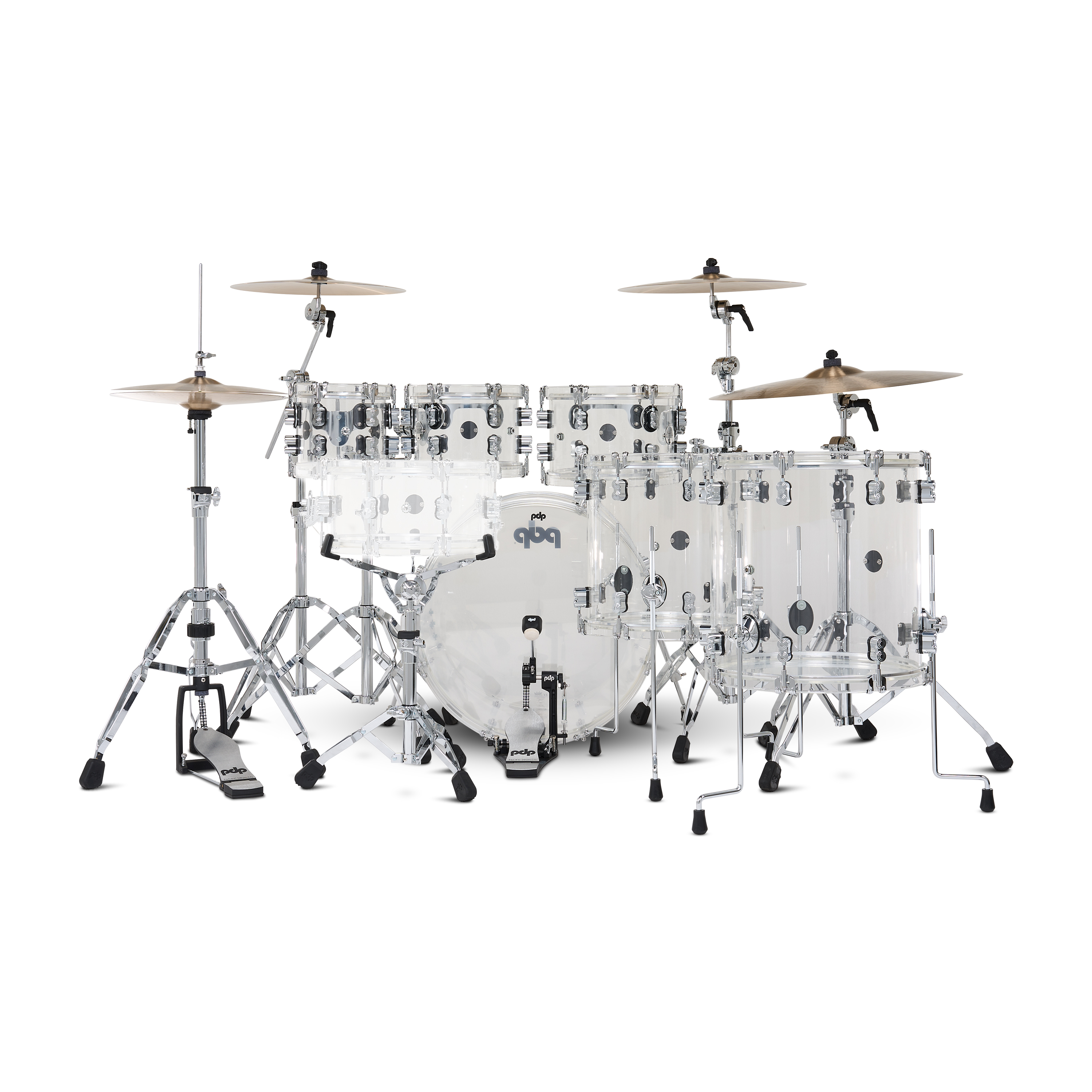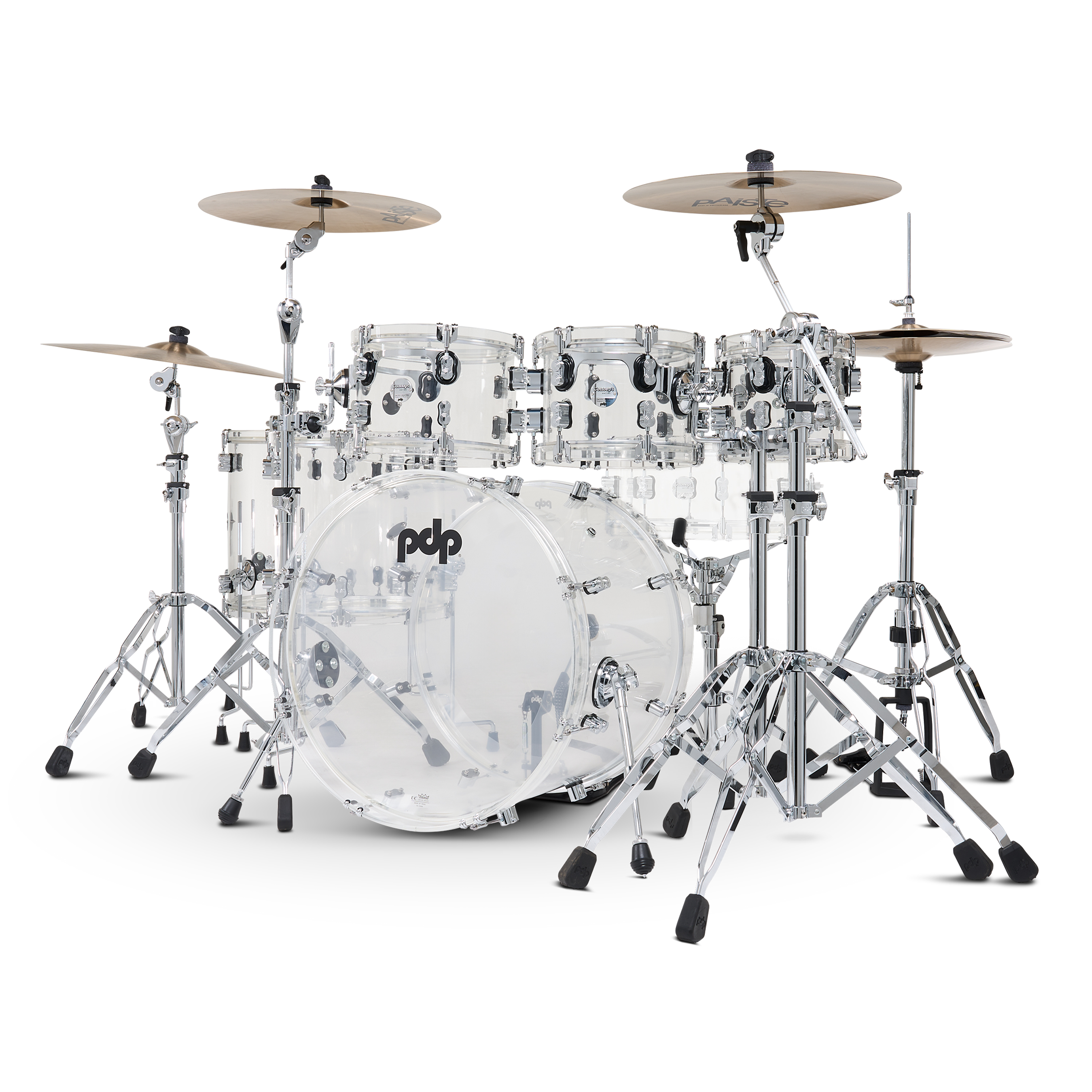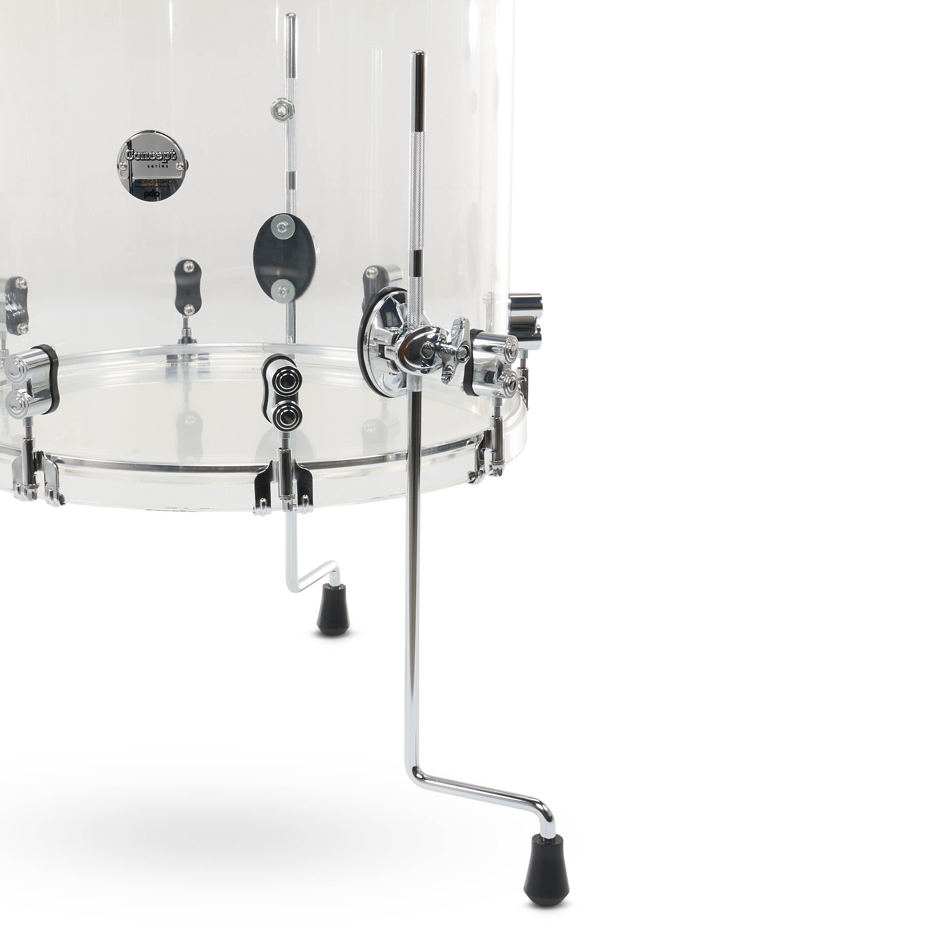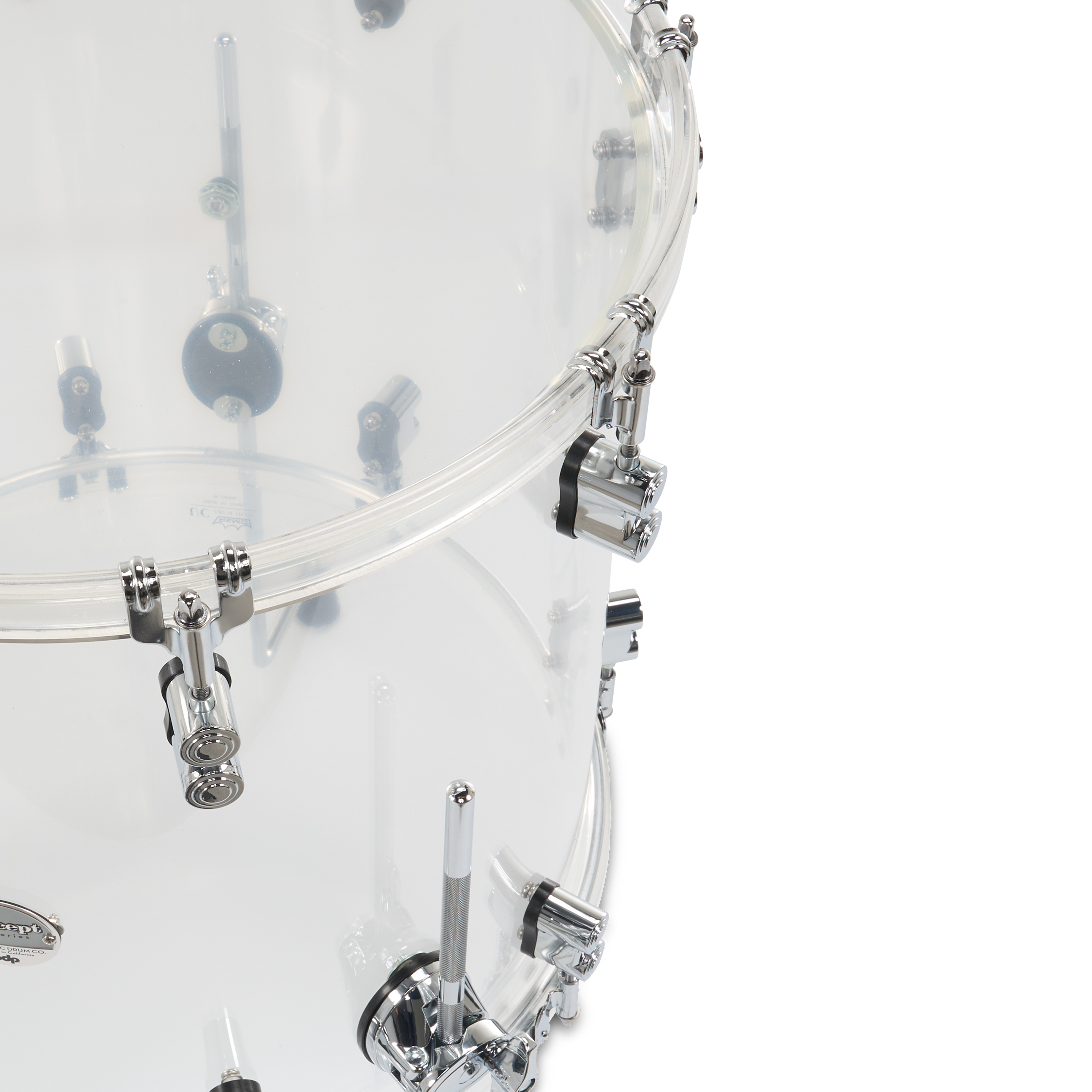 This Concept Acrylic Kit offers a new twist on Acrylic drums, featuring seamless Acrylic hoops around the drum set for a unique translucent vibe. Acrylic shells have been a mainstay in popular music due to their appealing looks and their bright attack, focused tone, and controlled sustain. These seamless shells are fitted with 1" seamless Acrylic hoops on the toms and 2" seamless hoops on the bass drum. The hoops offer a cutting rimshot while helping control overtones. On the toms, the patented STM™ system enhances resonance, providing maximum sustain while securing your mounted toms in place. These drums are also fitted with True-Pitch tension rods for more accurate and secure tuning. This shell pack features a configuration of 7×8", 7×10", and 8×12" toms, 14×14" and 16×16" floor toms, and 16×22" bass drum. These drums are fitted with Remo heads. Make an instant impression on any stage with these sparkling and powerful drums.