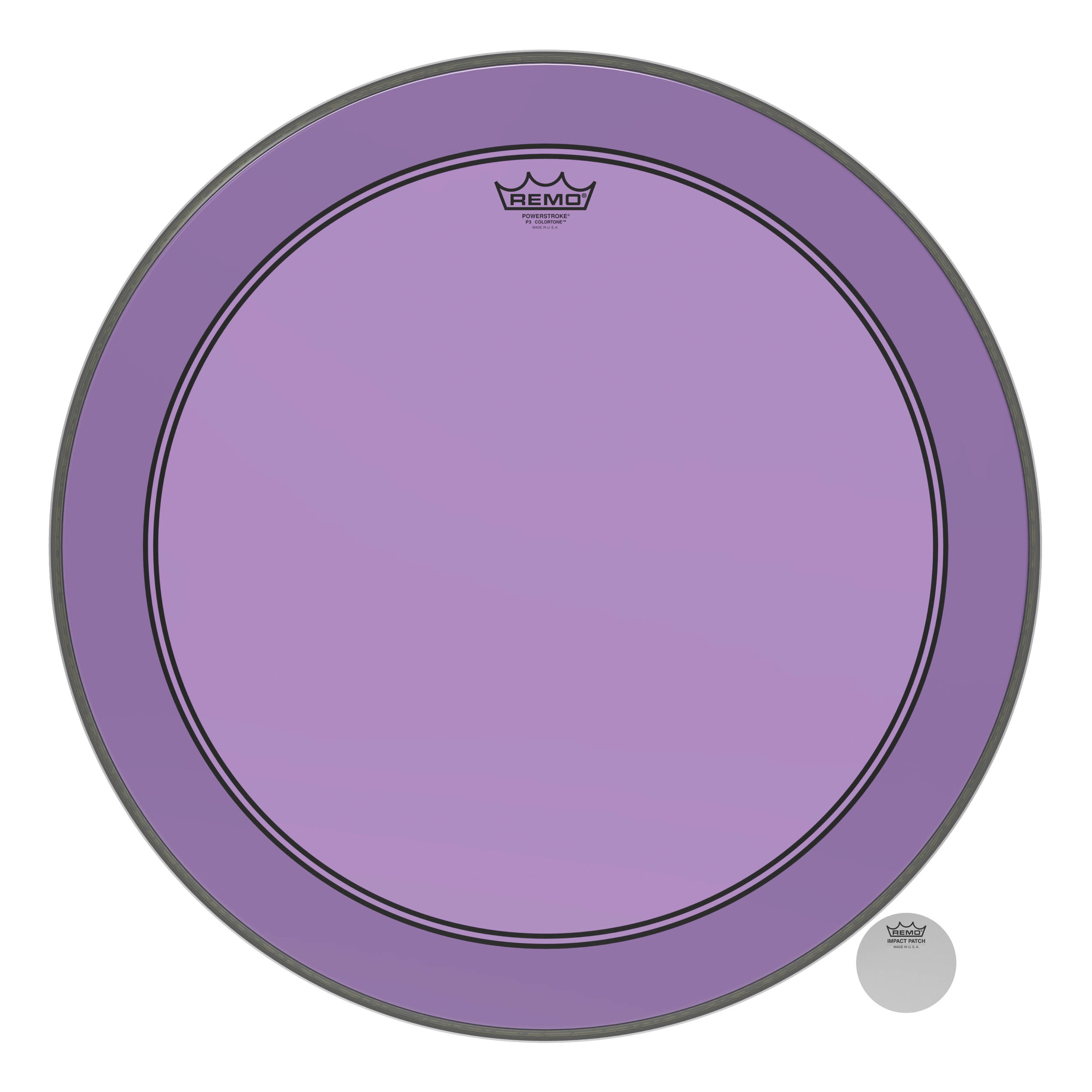 The Powerstroke® P3 Bass Colortone™ batter drumheads feature Skyndeep® Imaging Technology for stunning visual appeal with powerful projection, tone and durability. Introducing 8 vibrant colors, Powerstroke P3 Bass Colortone drumheads are constructed with a single-ply 10-mil film combined with a 10-mil underlay dampening ring. Customize your drums like never before with a new dimension in color that demands to be seen and heard. Color options include Orange, Yellow, Red, Green, Blue, Smoke, Pink and Purple. Available in bass batter sizes 18″ through 26″.