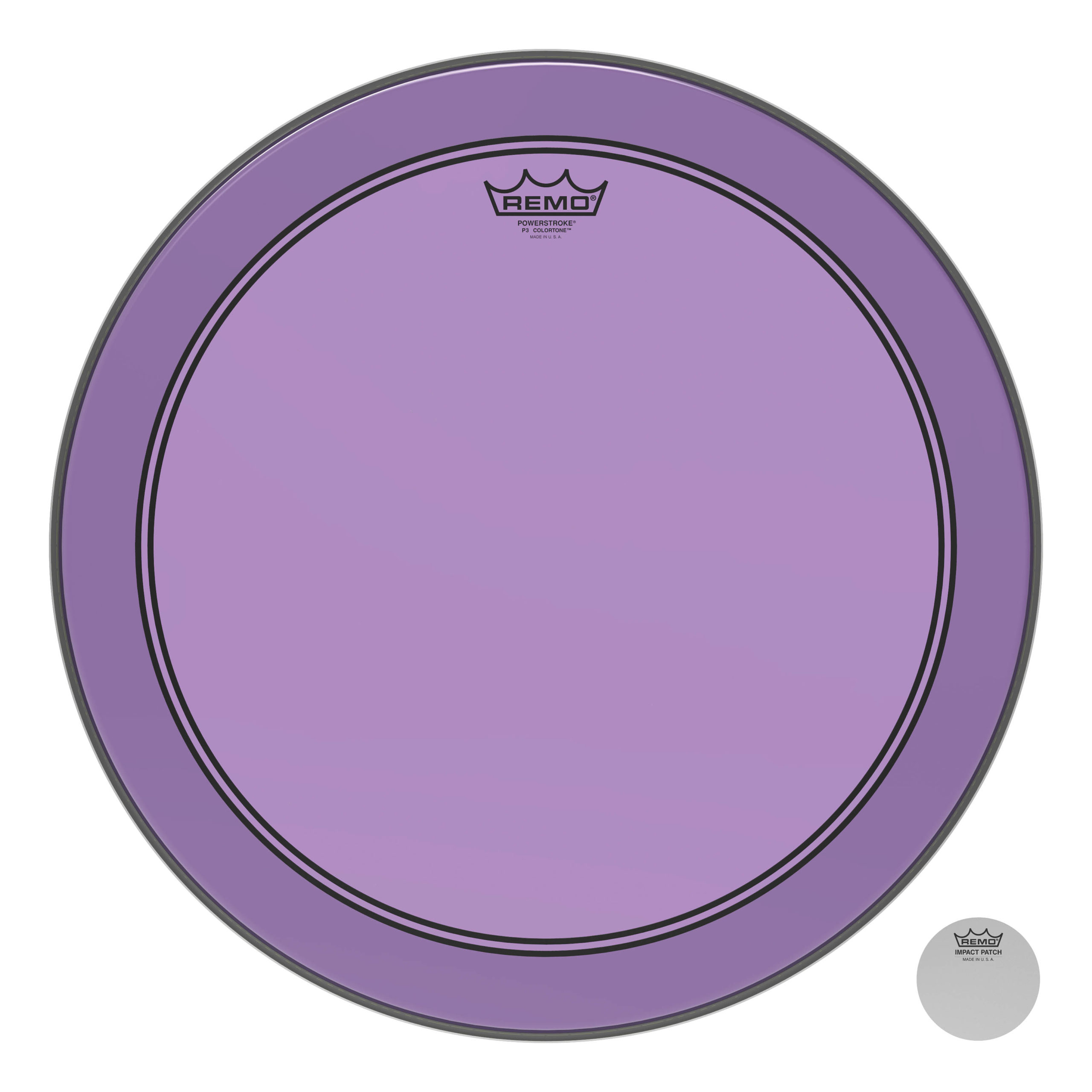 The Powerstroke® P3 Bass Colortone™ batter drumheads feature Skyndeep® Imaging Technology for stunning visual appeal with powerful projection, tone and durability. Introducing 8 vibrant colors, Powerstroke P3 Bass Colortone drumheads are constructed with a single-ply 10-mil film combined with a 10-mil underlay dampening ring. Customize your drums like never before with a new dimension in color that demands to be seen and heard. Color options include Orange, Yellow, Red, Green, Blue, Smoke, Pink and Purple. Available in bass batter sizes 18″ through 26″.
