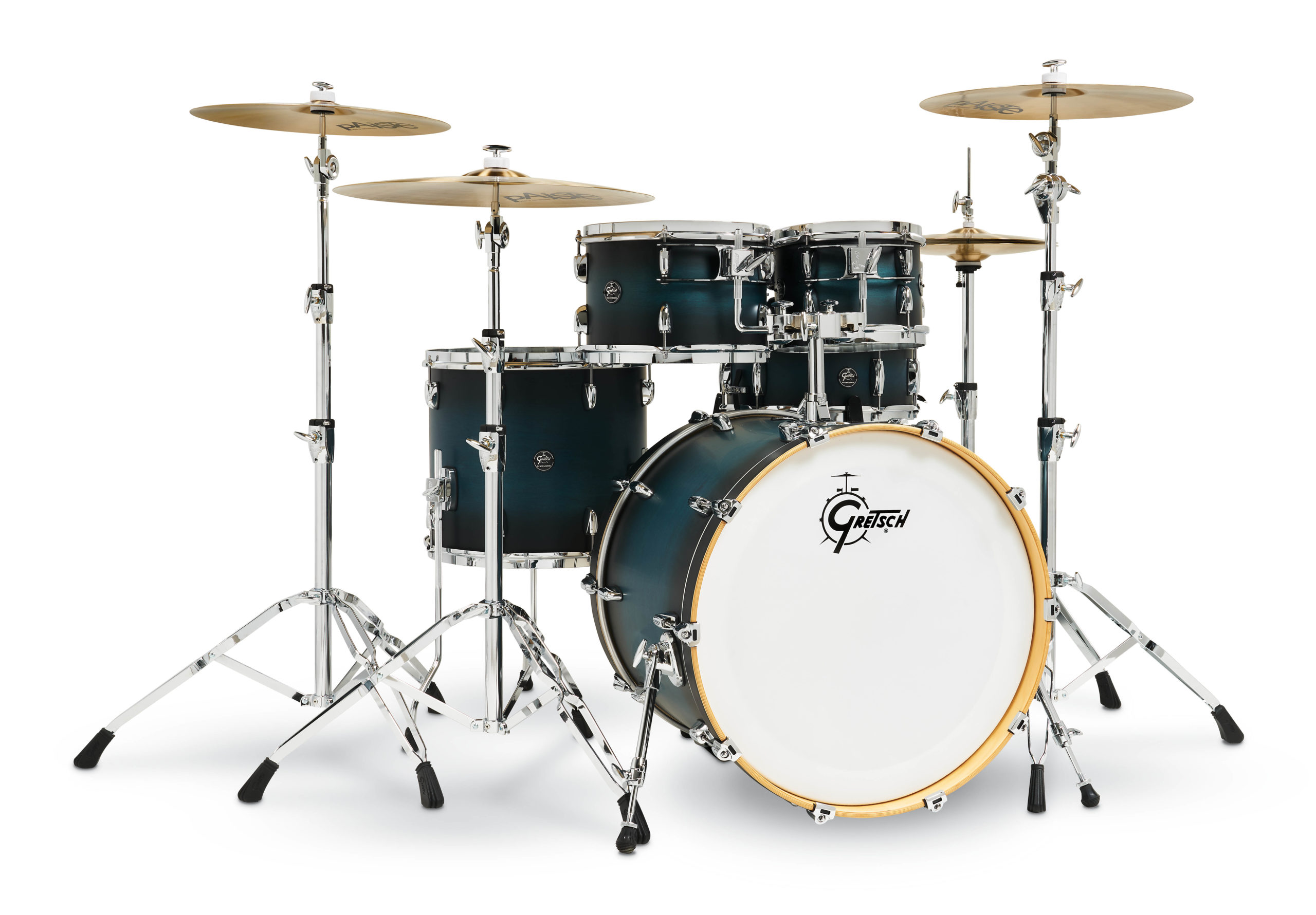 Delivering the traditional Gretsch sound with an incredibly open and harmonic tone, the Renown series of drums feature 7-ply Gretsch formula maple shells, 30-degree bearing edges and exclusive Silver Sealer interiors. Now, with one drum set, you can play with the sensitivity and touch to handle the smoothest grooves of the 1950s; the attack and projection required to drive the most powerful compositions of the ’60s and ’70s; and the clarity and vibrance needed to faithfully reproduce the clean studio sounds of the ’80s, ’90s and beyond. Features include: · 18×22 Bass Drum, 7×10, 8×12 Rack Toms, 14×16 Floor Tom, 5.5×14 Snare Drum · 7 ply Maple · 30 Degree Bearing Edge · Gretsch Double Flanged 302 Hoops · Gretsch Silver Sealer The new Satin Antique Blue Burst finish joins the existing catalog of four lacquer and two premium Nitron finishes.